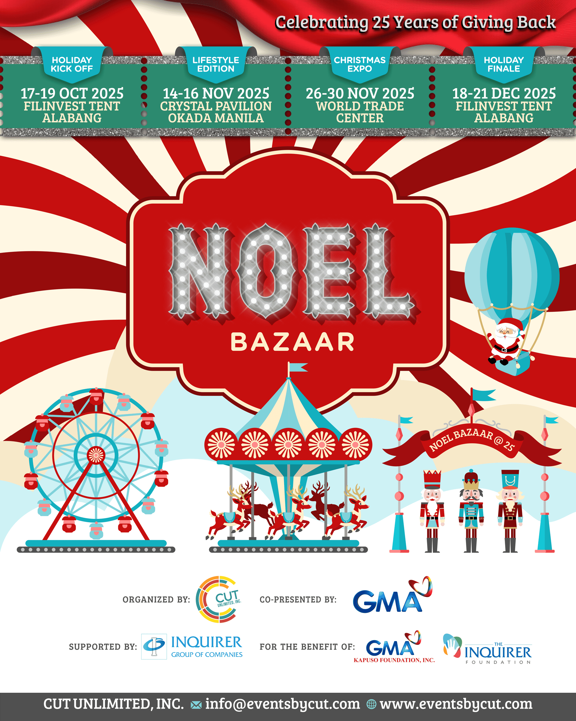 Now on its 25th year, Noel Bazaar 2026 brings the magic of the holidays to life with its signature mix of shopping, celebrity sightings, food, and festive finds. Featuring a curated lineup of local entrepreneurs, fashion brands, gift items, home décor, and specialty food, Noel Bazaar continues to be the go-to holiday marketplace for families, friends, and gift hunters. With exciting activities, influencer pop-ups, and the spirit of giving at its heart, Noel Bazaar is where Christmas begins.