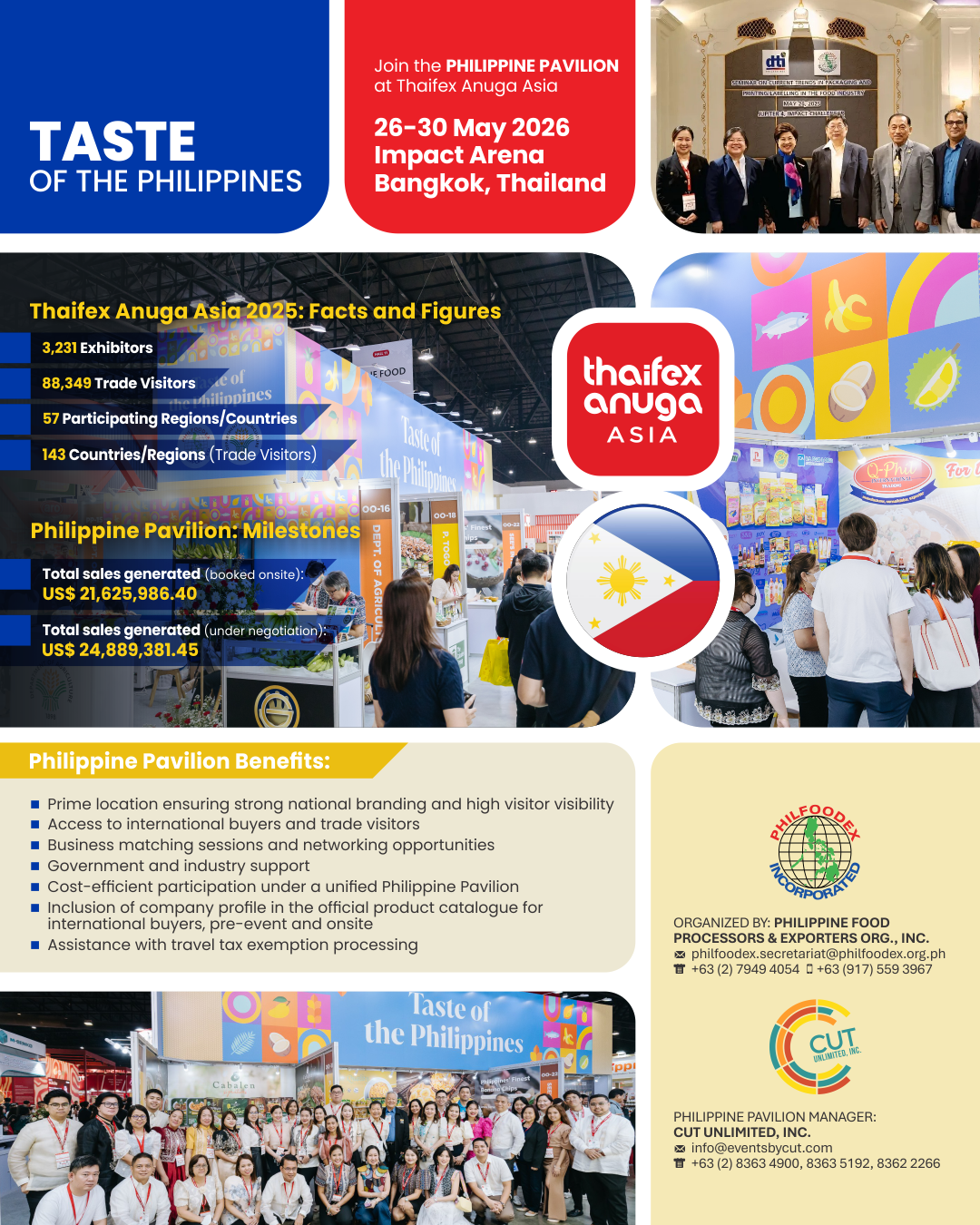 The Philippine Pavilion will feature the finest Philippine food and beverage products, highlighting the country’s rich culinary heritage on an international stage.