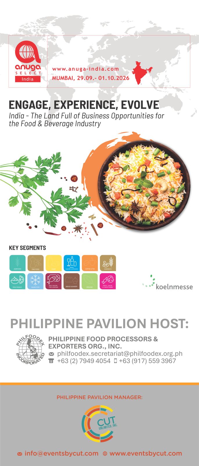 Organized by the Philippine Food Processors and Exporters Organization (PHILFOODEX), Inc., the Philippine Pavilion will showcase export-ready food and beverage products under the national brand “Taste of the Philippines,” positioning Philippine companies for market diversification and long-term growth in India.